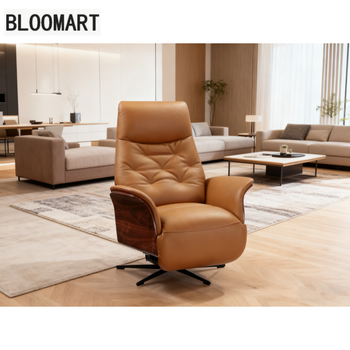 आरामदायक पूर्ण वास्तविक चमड़े एक कुर्सी स्पंज नीचे प्लग भरने वाली लकड़ी फ्रेम कार्बन स्टील मैट ब्लैक टर्नटेबल बेस